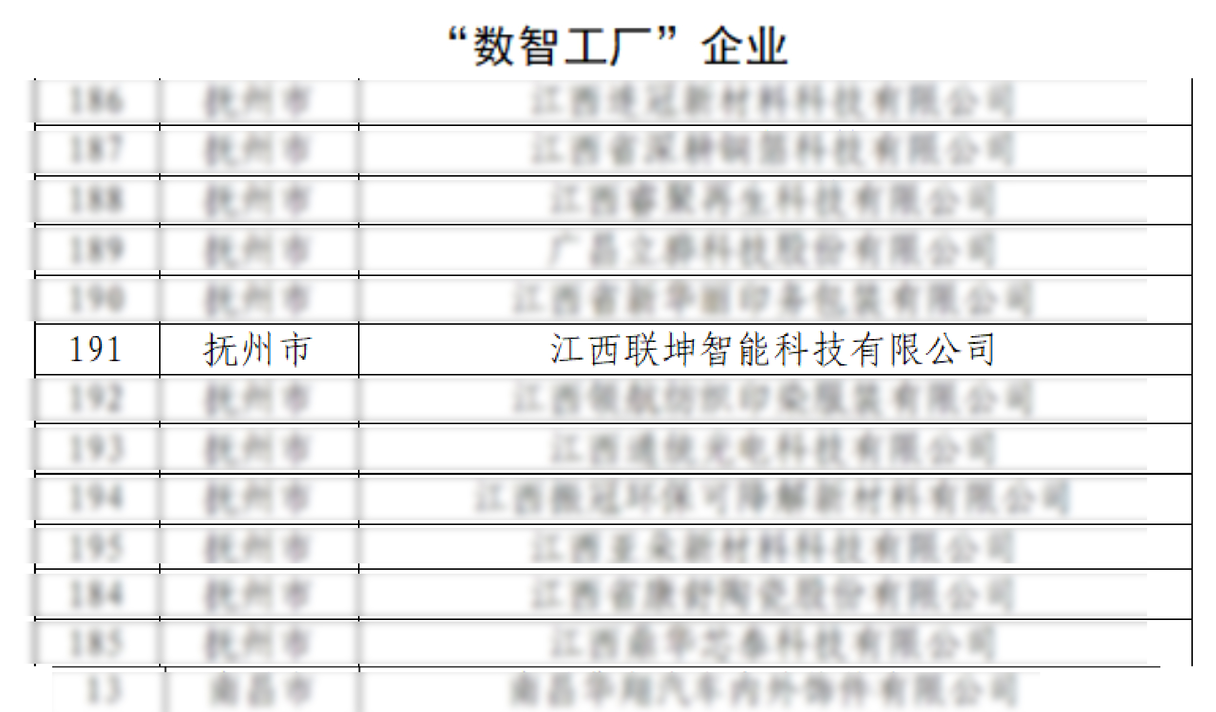 【概要描述】近日,江西省工业和信息化厅正式公布第二批“数字领航”企业及“数智工厂”认定名单。其中,江西联坤智能科技有限公司(以下简称“江西联坤”)凭借在制造业数字化转型领域的突出成效和创新实践,成功入选“数智工厂”行列。此次入选,不仅标志着江西联坤在智能制造体系建设、数字化能力构建等领域获得省级认可,更彰显了对公司持续推进技术革新与管理升级成果的充分肯定。